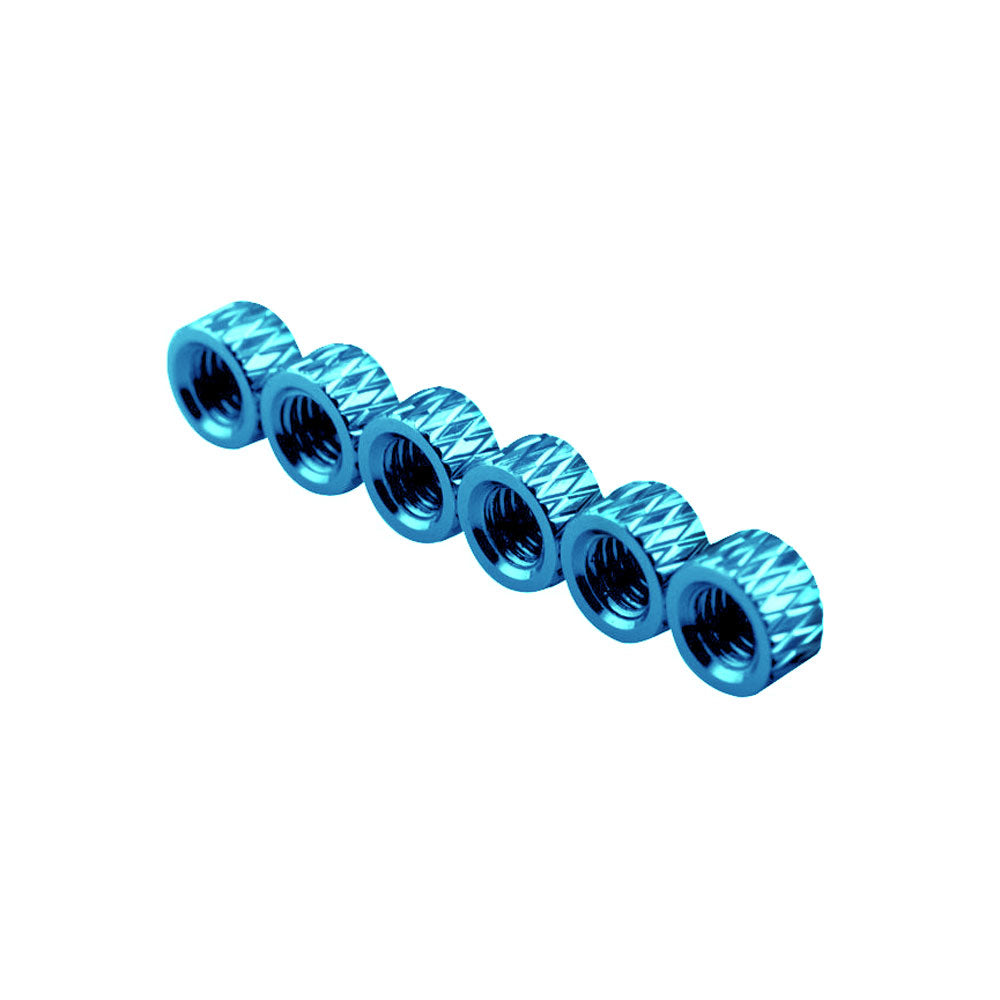These 3mm textured aluminum spacers are lightweight, threaded, anodized, and have a textured grip surface treatment which facilitates holding of the spacers during assembly and servicing of the airframe.